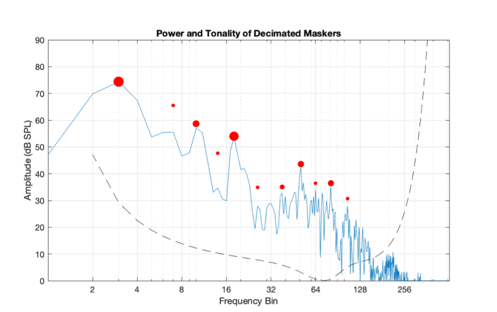 A project analyzing digital audio, identifying maskers, and estimating a global masking threshold using MATLAB.
